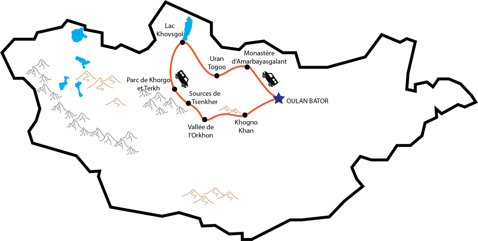 Lac de Terkh – Tsetserleg – Sources de Tsenkher